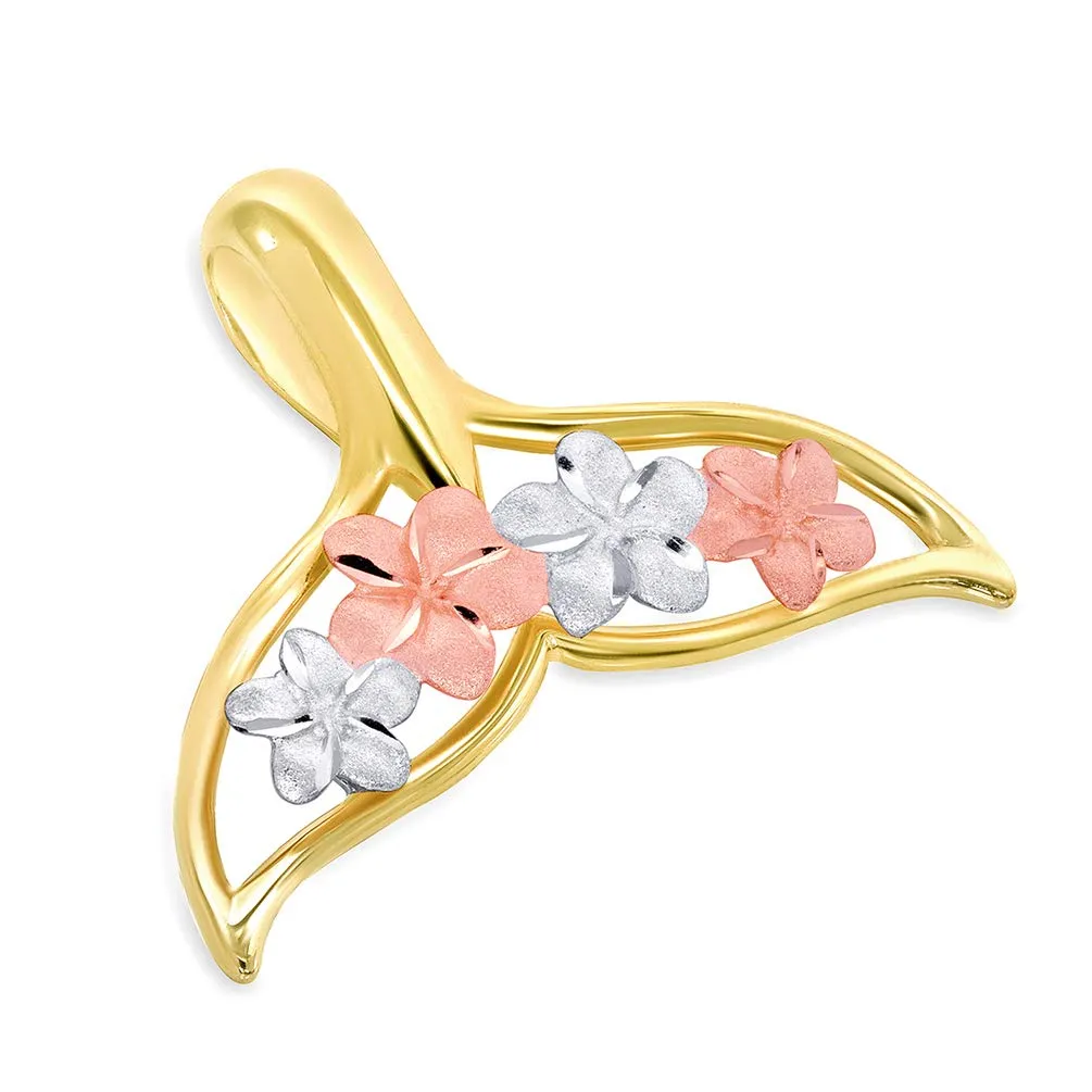 - Handmade solid gold whale tail outlining plumeria flowers charm pendant perfect fit for necklaces and bracelets