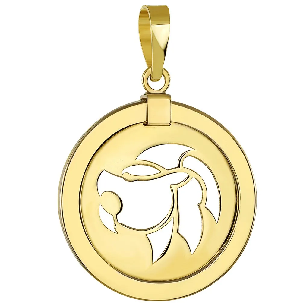 Handmade Solid Gold Double Sided Simple Leo Zodiac Charm Pendant with a Solid Gold Cuban Link Necklace. Finely Casted with High Quality Genuine 14 Karat Gold. Pendant Height: 1.05in (with bail), Pendant Width: 0.73in, Pendant Depth: 0.06in, Chain Width: 2.50mm, Total metal weight: 4.60 Grams. This Elegant Two-Sided Zodiac Charm Pendant Necklace is Finished with a Glimmering High Polished Finish in Front & an Elaborate Diamond Cut Style Design in the Back. Made in USA & Includes Free Gift Box.