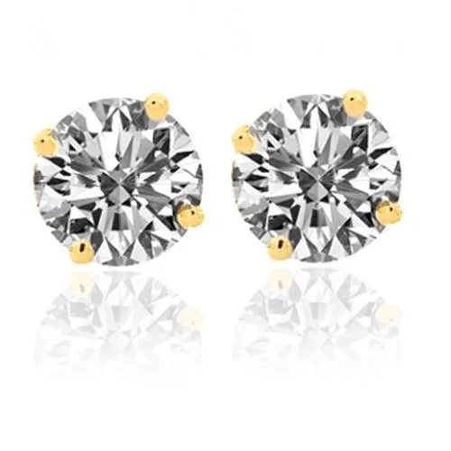 These simple yet very elegant diamond stud earrings are handcrafted in 14k yellow gold. The center of both earrings are prong set with diamonds which total to 1.40 carats GIA certified. The frame measures to 5.7 mm in diameter and securely locks with a screw back closure. Weighing approximately 1.5 grams, these beautiful studs are ideal for an every day wear.DETAILS: