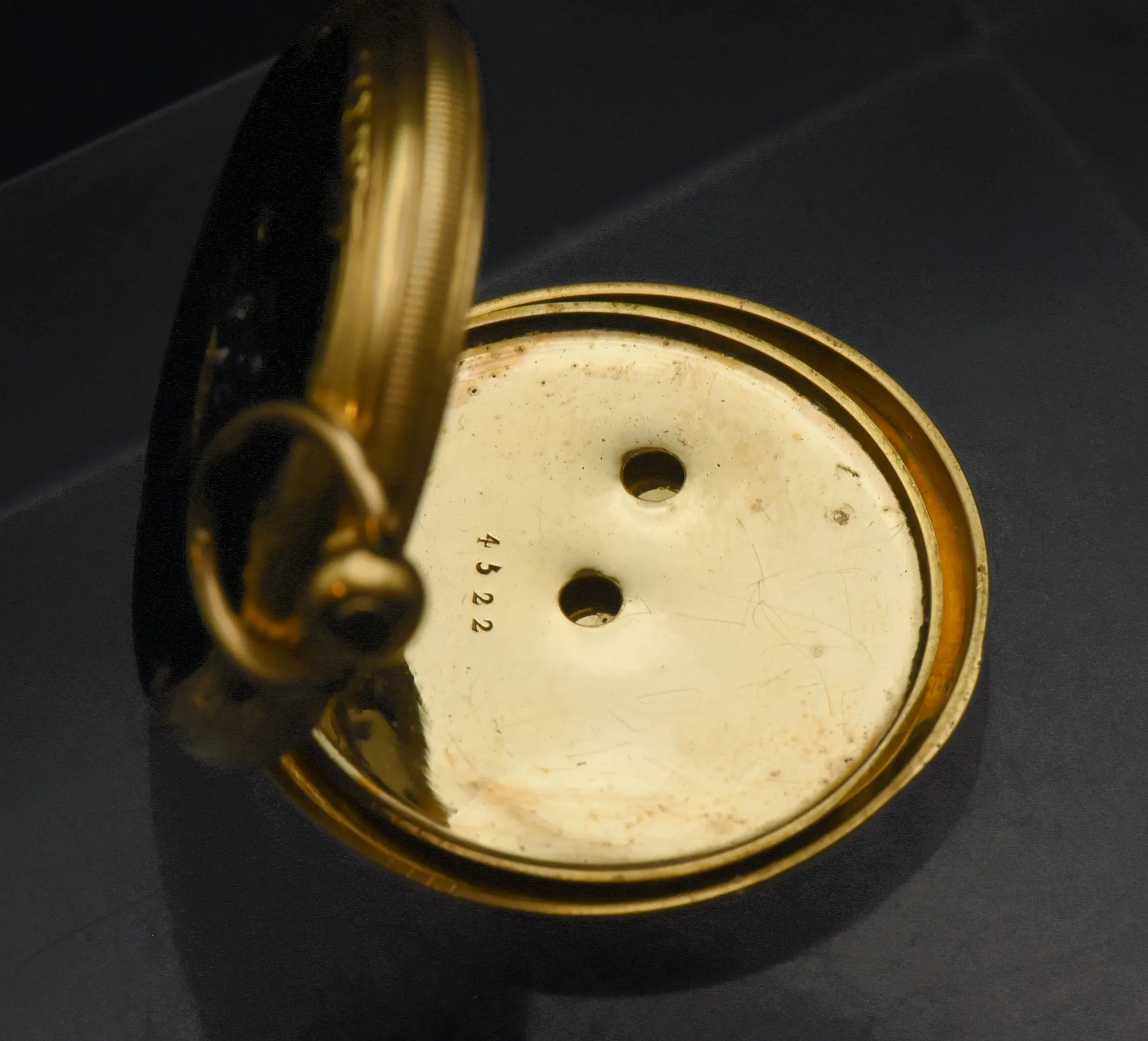 Pocket watch - 1 3/4 x 1 1/4 x 1/4" - 26.46g - Marked "RD (maker's mark) 18K 4522 U190 K39 409 K36291 Echappement A CYLINDRE Huit Trous EN RUBIS 22"