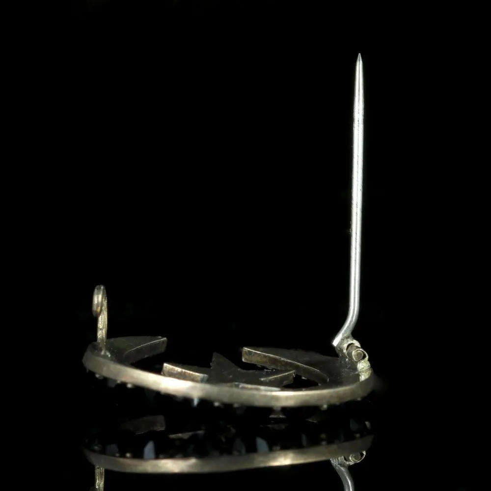 This beautiful Victorian Garnet Moon Crescent brooch is, Circa 1880.