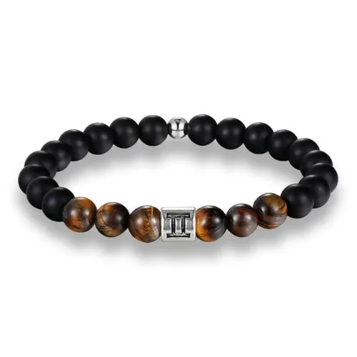 Simple yet elegant, this beaded zodiac bracelet is made for men who want to sport their horoscope sign in a classy manner. The beaded bracelet features black agate beads, brown tiger eye beads, a small silver-toned bead in the back, and a silver-toned zodiac sign bead in the front. The beads are held together with strong but stretchy elastic, making sure the bracelet is as durable as possible. The minimalist outlook and classic 8mm bead size make it a perfect part of a bracelet stack while looking stunning worn alone as well. Upgrade a casual outfit or complement a formal one with this handsome beaded black and brown zodiac bracelet.