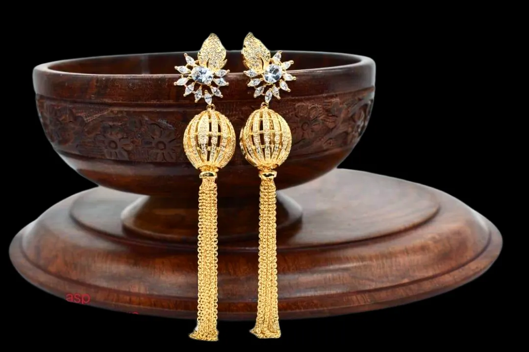 Very feminine, this must-have design can be worn on any Occasion to boost up your style factor and enhance the ultra beauty factor. Indian, or Western, this Earrings gives a glamorous looks, Sparkling colour giving the choice to it it with any colour dress