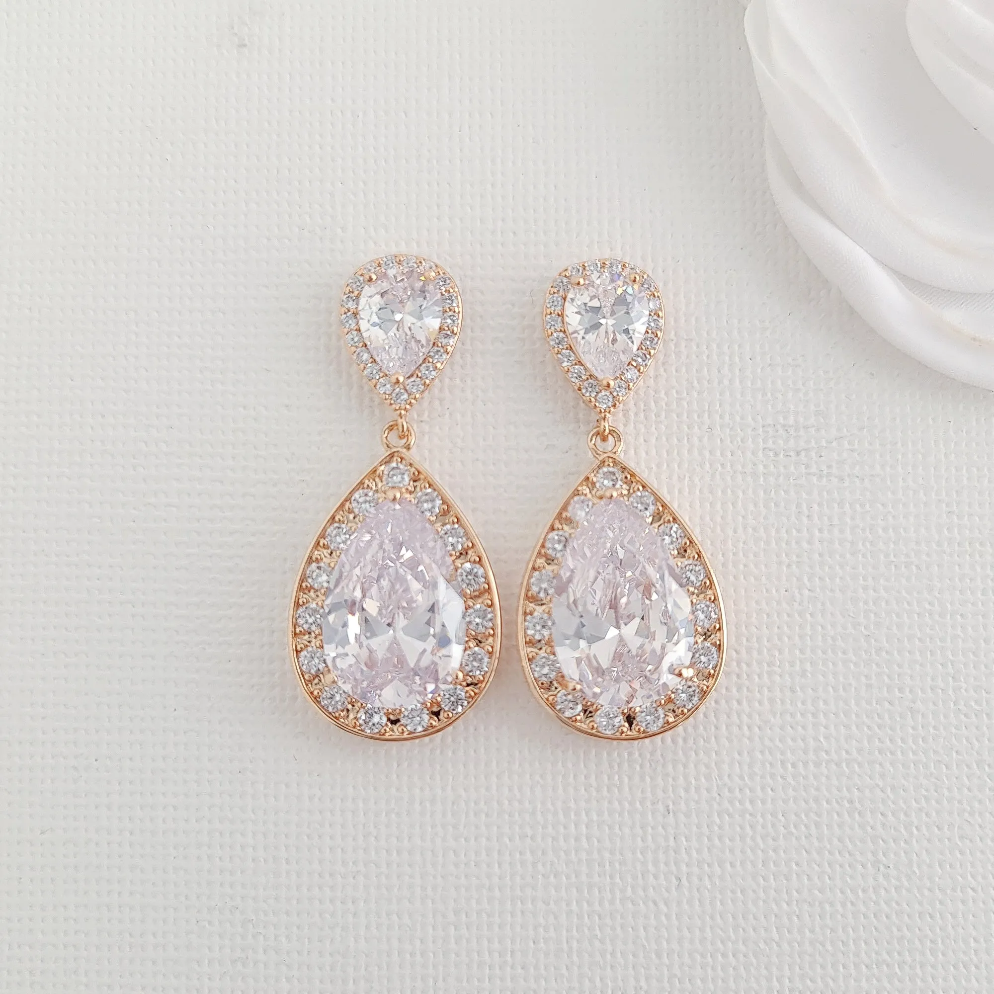 Featuring a beautiful teardrop design and a rich mix of gold and cubic zirconia, these earrings are a stunning addition to your bridal attire or special occasion ensemble. Whether you're looking for a pair of earrings to complement your gold-themed wedding jewelry or just want something that will add some sparkle to your day, these earrings are a must-have.