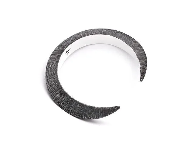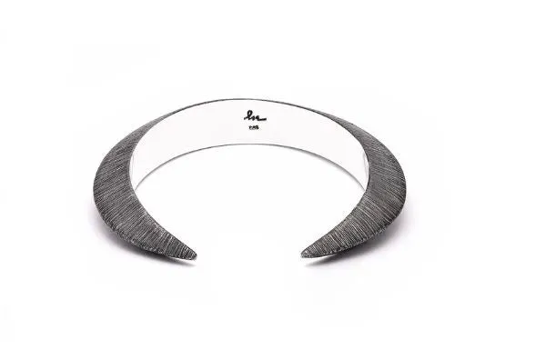 A versatile bracelet that can be worn in two ways, lined, oxidized and ridged. 925 Sterling Silver. Etched and Oxidized. Available in small, medium, and large