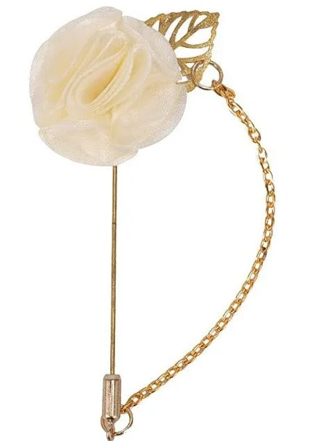 Ivory Mens Formal wear l Lapel Pin l Chiffon rose l Groom Boutonniere l Wedding l Groomsmen BOUT-C003