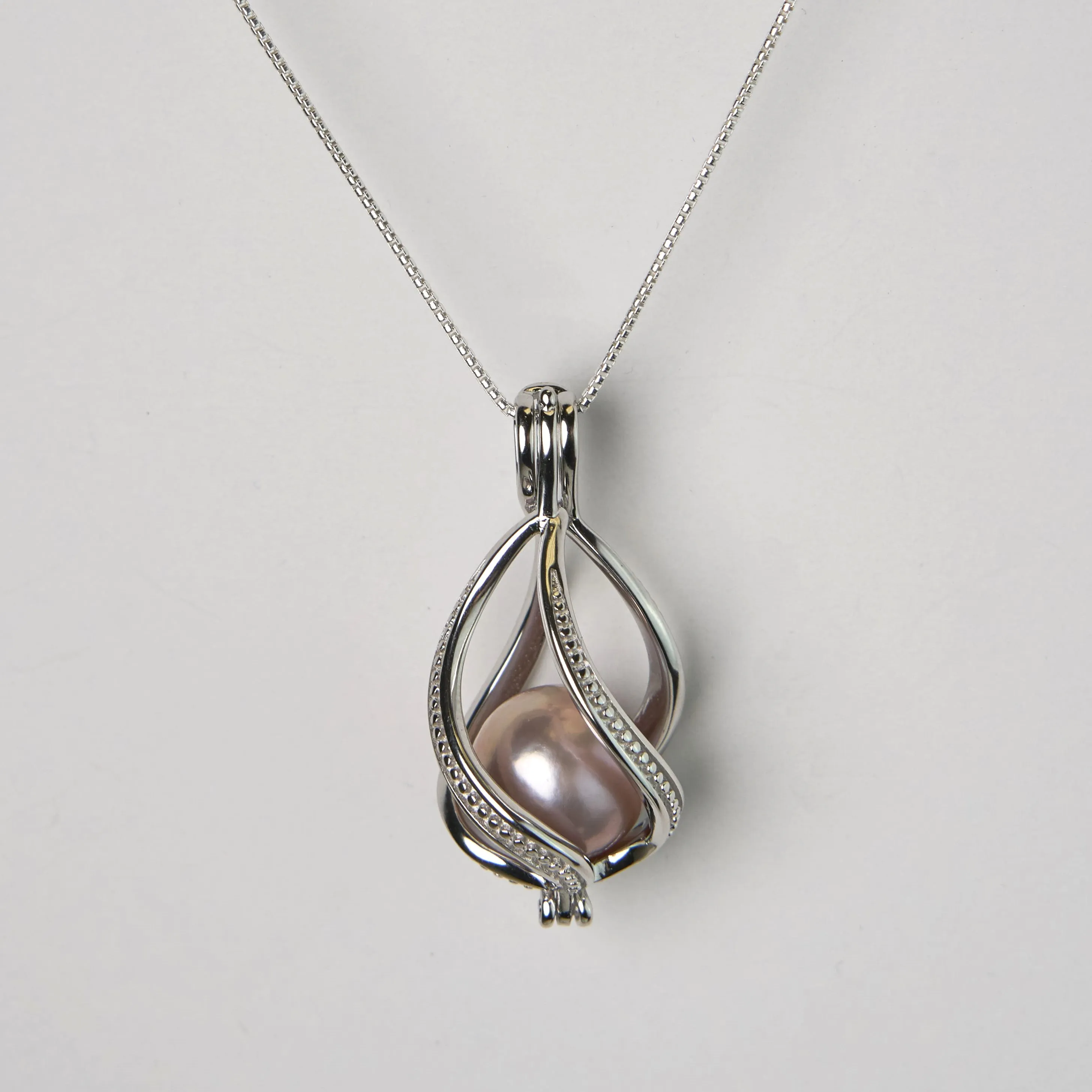 Show off your your breathtaking Edison Pearl with this stylish Sterling Silver Edison Pearl Open Cage Necklace. All items are Sterling Silver. Cage holds pearls 9-15mm. Cage necklace will not work with pearls smaller than 9mm.