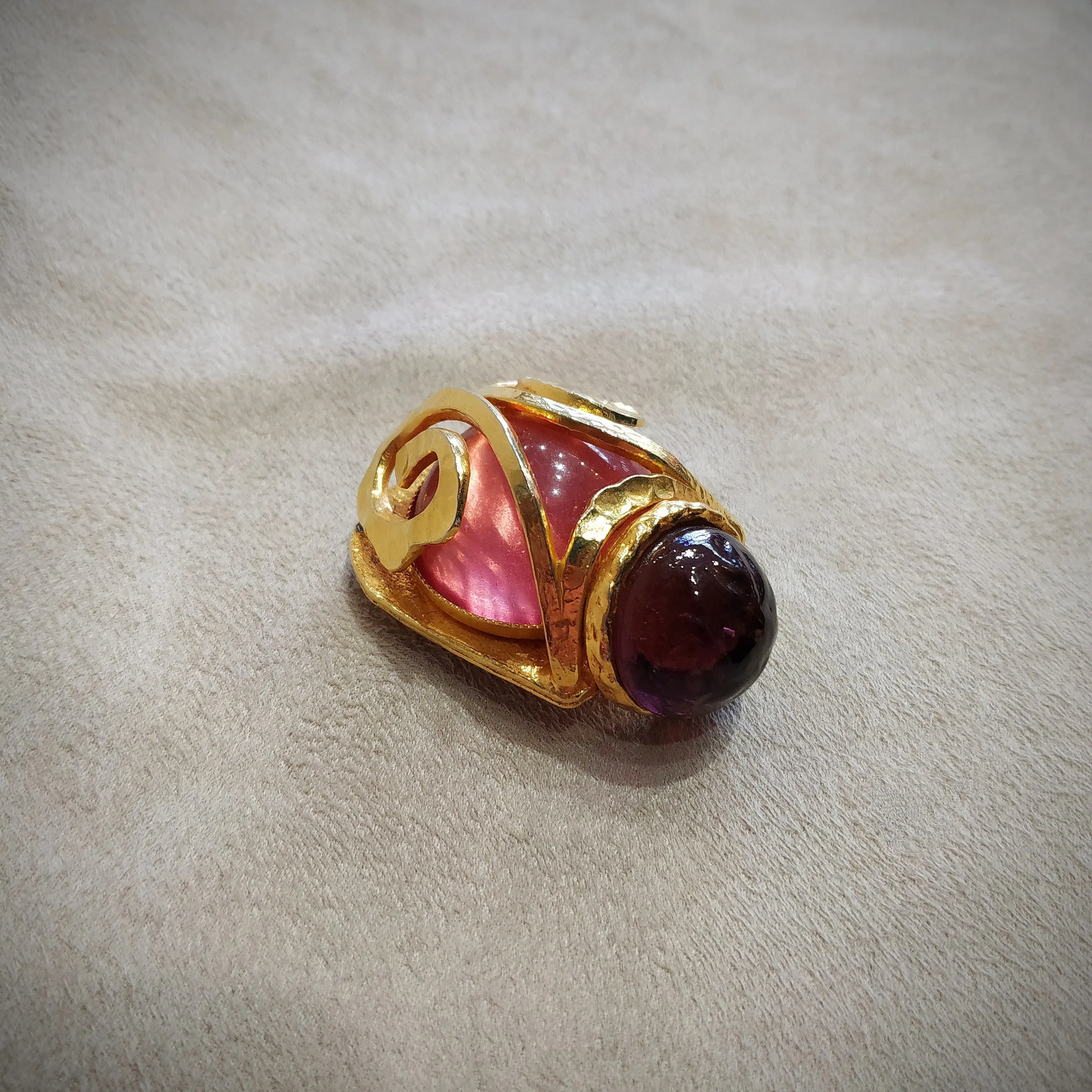 A gorgeous statement brooch by Rose Cardin Paris. pink poured glass stones set in gold plated metal.
