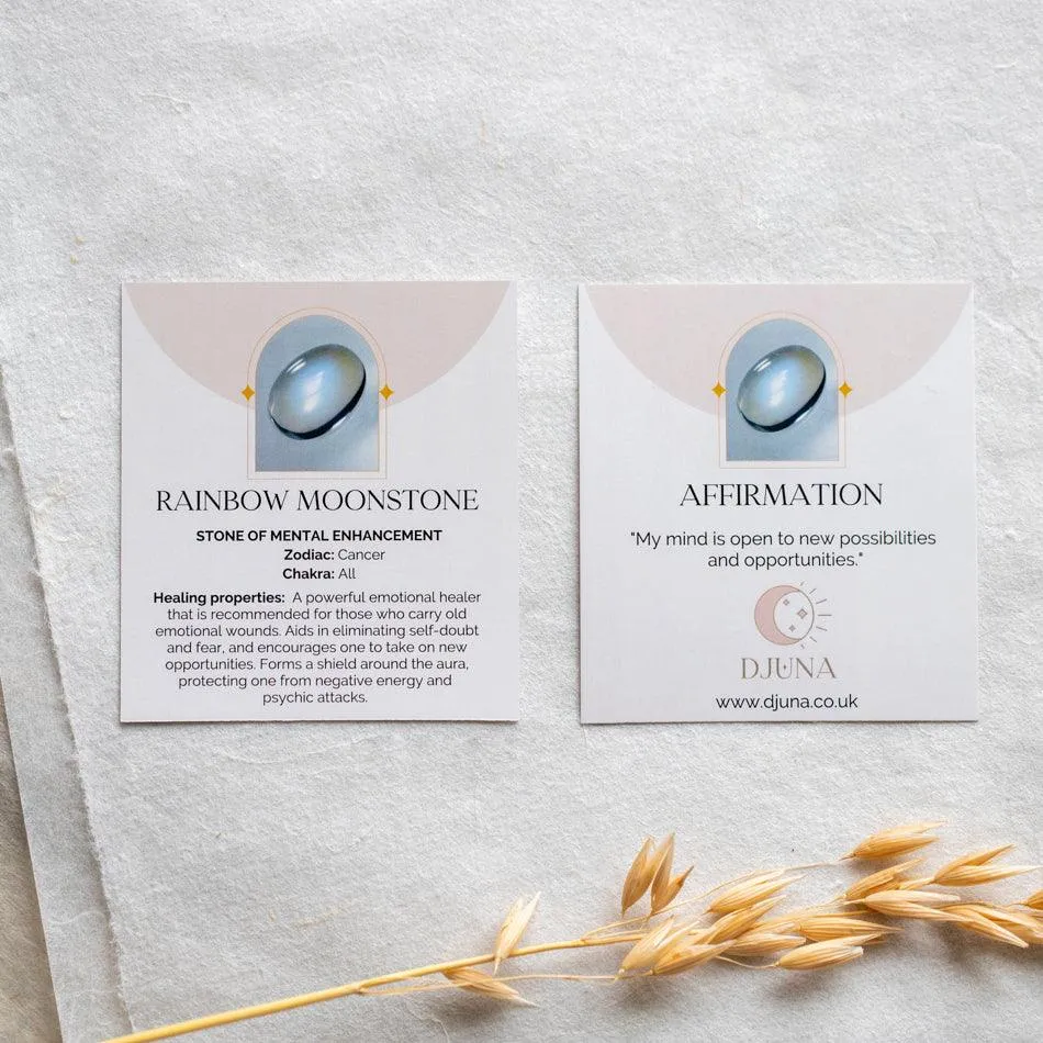 Rainbow Moonstone is an exquisite gemstone used in jewellery going back to ancient civilizations. The Romans believed moonstone was born from solidified rays of the moon. It was during the early 20th century, during the Art Nouveau period, it became popular with artists and goldsmiths for creating jewellery.