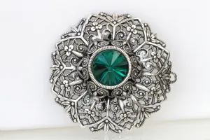 We love antique crescents! This gorgeous crescent is made of 15 karat yellow gold, and has 23 round pearls decorating the crescent moon with a star in the center. The Moon has a single star fixed in the center, giving it a unique touch. If, as according to the Victorians, crescent moons and stars symbolize spiritual guidance and direction, you will never be lost with this celestial-themed jewel. This moon is currently a brooch, but a bail can be added to convert the brooch into a pendant. This moon would look great on any top, or worn on a simple chain or layered up with your personal collection of charms.