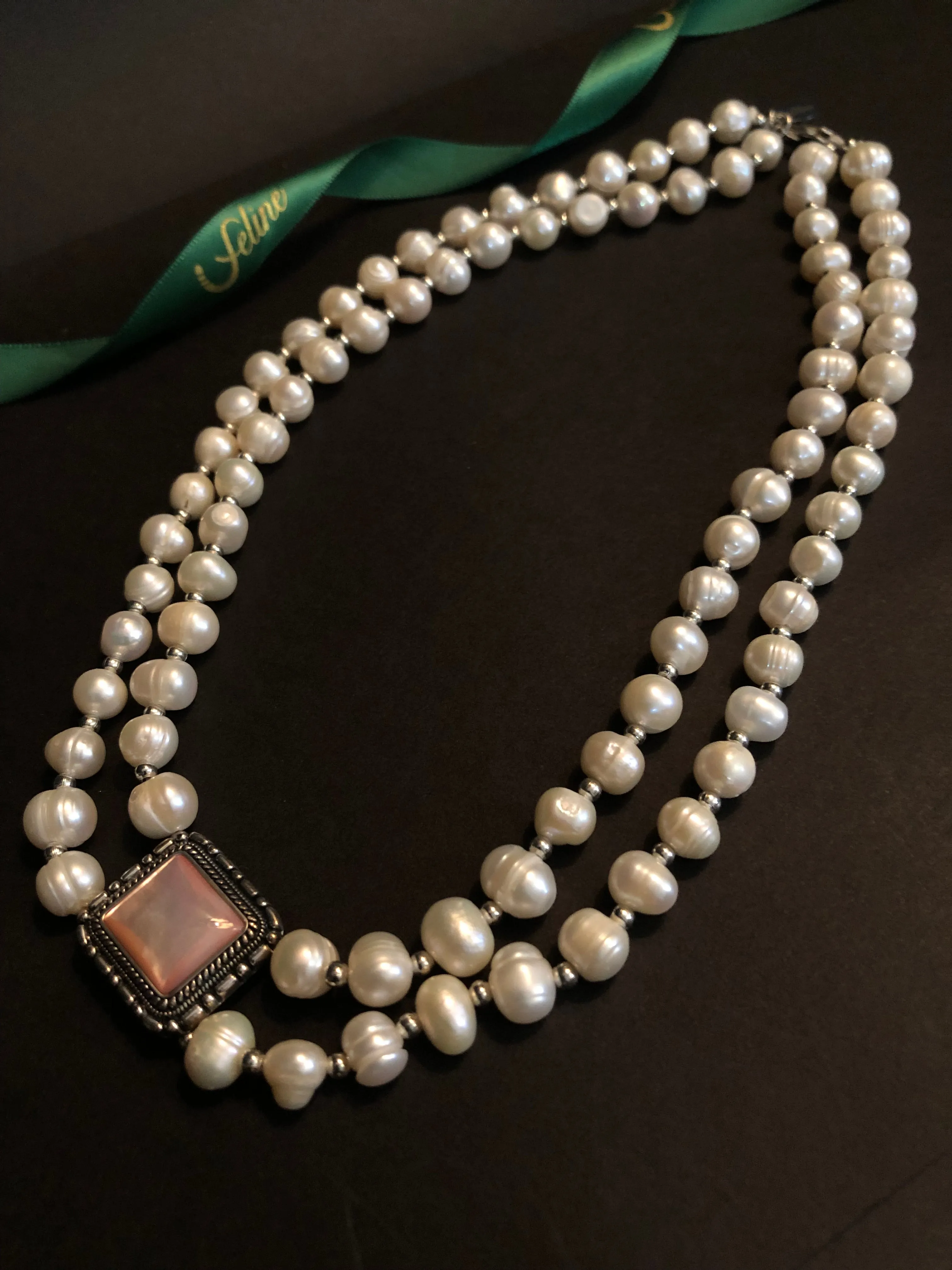 sterling silver findings with sterling silver and pink mother of pearl pendant